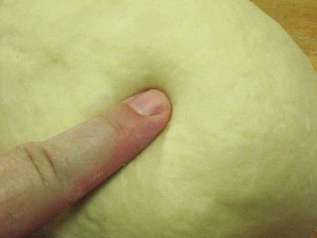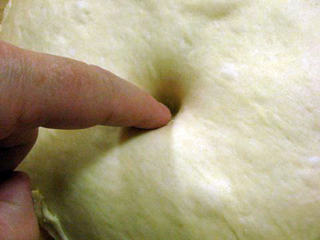 After about 5 minutes of kneading, give your dough the "doorbell" test. Lightly flour your finger and press into the dough just like you would to ring a doorbell. Just a quick "ding," not a prolonged "bzzzzzzzzz". The dough should spring back and fill in the indentation of your finger quickly. If not, knead a little longer and try again.