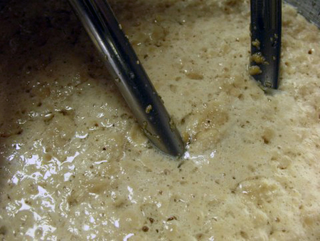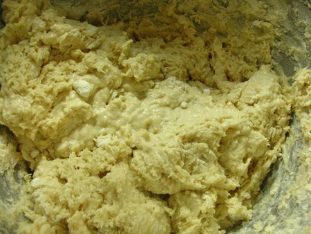 Using the paddle attachment on your mixer, blend in 5 cups (600g) King Arthur Unbleached All-Purpose Flour. You'll have a loose, wet dough at this point but it should be quite smooth.