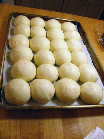 Here's how I do these rolls at home. A half sheet pan lined with parchment paper holds one batch of rolls perfectly.