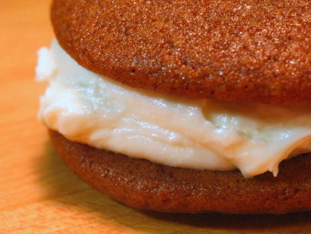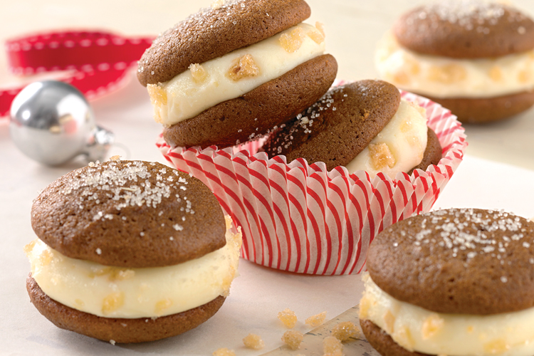 Please bake, rate, and review our recipe for Mini Gingerbread Whoopie Pies with Cream Cheese Filling.