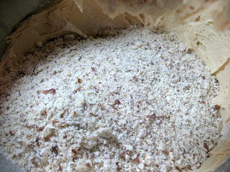 Add the rest of the cookie mix and 1 cup (96g) of nut flour. Here, I used toasted almond flour. You can use regular almond flour, hazelnut, toasted hazelnut, etc. Choose your favorite, and what will pair nicely with your planned fillings and toppings.