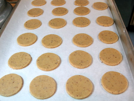 Next, chocolate drops. You can place disks of chocolate on before or after baking, it's up to you. I find if you place the disks on before baking, the chocolate tends to "sink in" a little more. Try it both ways, and choose your favorite.
