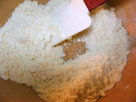 Combine until you have a crumbly, coarse mixture. Blend in 1 large egg and 1 tablespoon (14g) cream or milk until the mixture is a soft, wet cookie dough consistency.