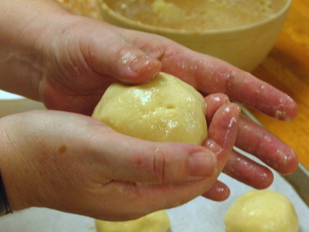 Roll each piece of dough into a ball and place on a parchment-lined baking sheet.