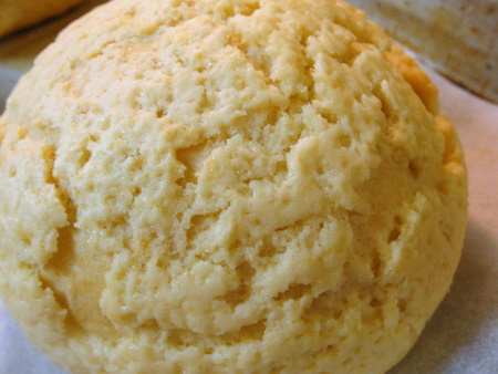 Dip your hands in cold water and scoop up about two tablespoons of the lemon dough. Gently mold it over the buns, trying to get each bun completely covered. The water will help keep the dough from sticking to you too much and makes the lemon dough nice and smooth.