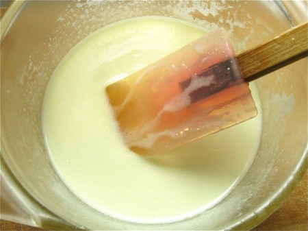 At first, you won't see much change; as the curd heats it'll foam up, but it'll stay quite liquid.