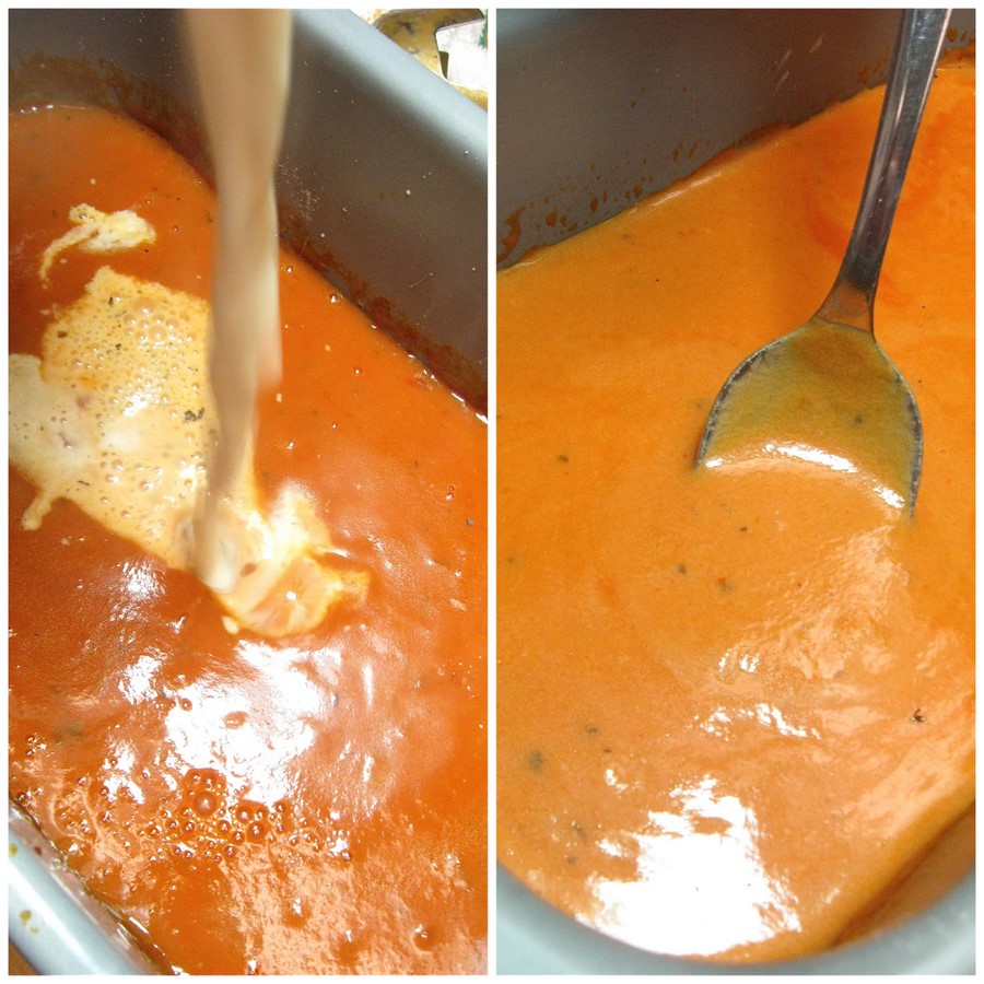 And that's it. Hot, creamy tomato soup, perfect with homemade crackers.