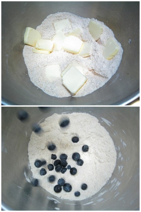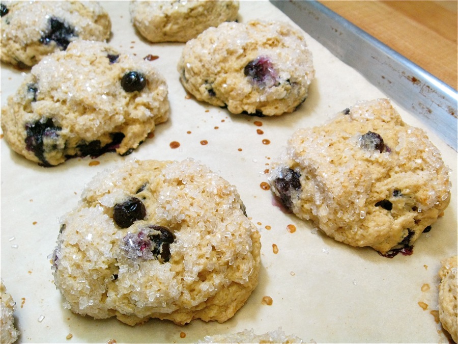 Sugar for sweetness, eggs for richness, almond and lemon for flavor – plus blueberries for interest – are the only real aberrations from a true British scone.