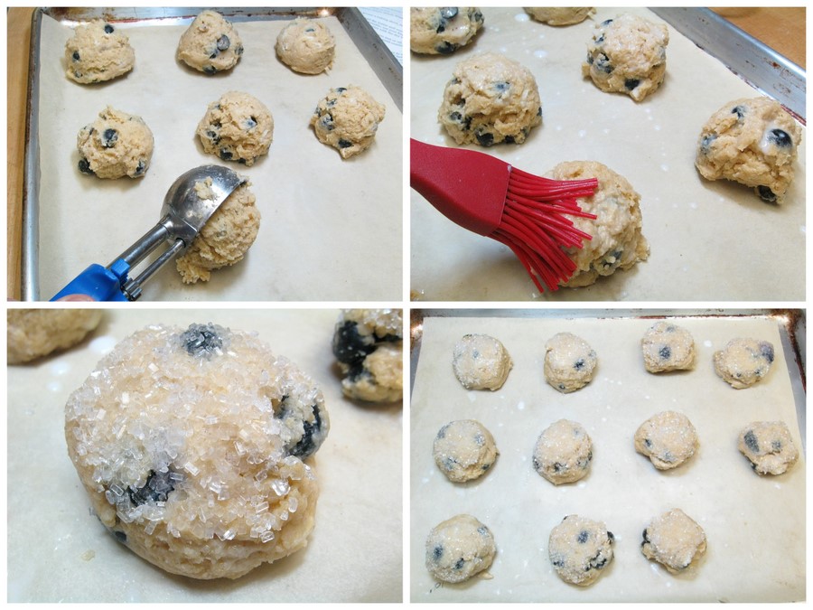 Use a muffin scoop or 1/4-cup measure to scoop the dough onto the prepared sheet in scant 1/4-cupfuls, leaving about 2" between each.