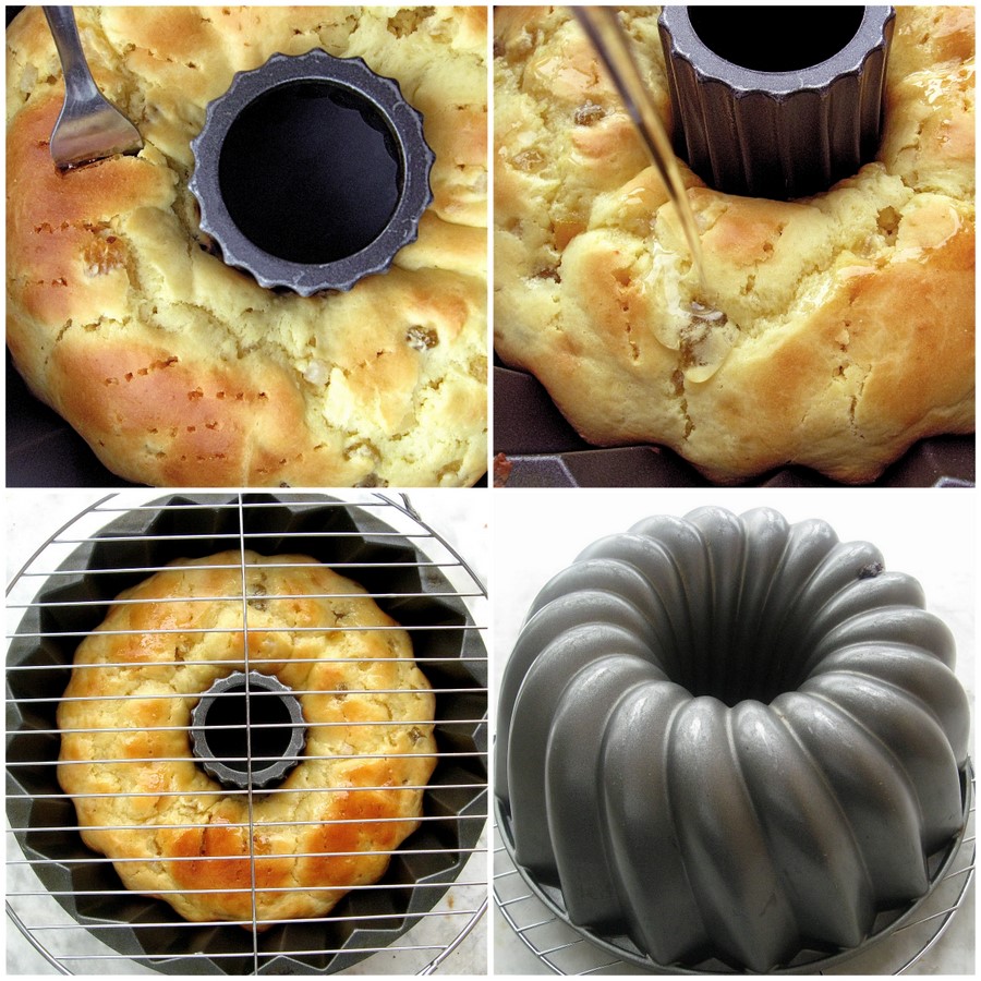 When the syrup is fully absorbed (about 20 minutes or so), carefully loosen the babka's edges, and turn it out of the pan onto a rack.