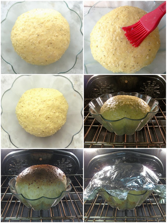 Form the dough into a ball, and place it in a greased pandoro (star) or panettone pan; a large souffle dish; or another round, deep pan. The pan should be about 6" to 7" wide, and 3" to 4" deep.