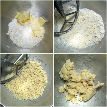 Mix the room-temperature butter with the remaining ingredients, beating until cohesive. The mixture will seem very dry at first; it may take up to 3 minutes beating at medium-high speed to bring it together.