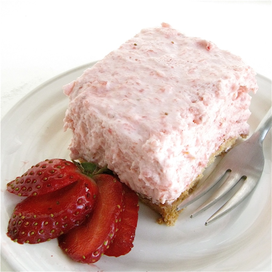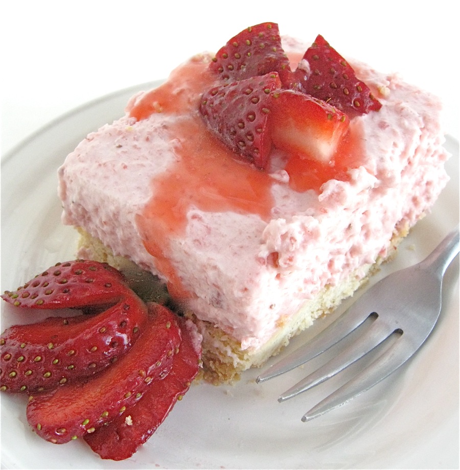 I've since renamed this creamy, strawberry-y confection Strawberry Cream Shortbread – so as not to scare off the mousse-fearing general public. Still, a mousse by any other name is creamy, rich, and the perfect complement to a buttery, tender/crumbly shortbread crust.