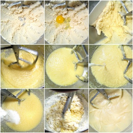 Next, beat in the 5 large eggs; the mixture will look a little grainy/curdled. Beat for 3 minutes after you've added the final egg.