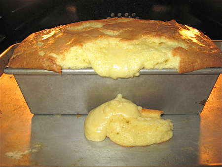 Now, pay attention, class, and repeat after me: I WILL USE THE CORRECT SIZE OF LOAF PAN. That would be 9” x 5” x 2 3/4” deep, or 12” x 4” x 4” deep. Take out your ruler, and measure the inside top of your loaf pan.