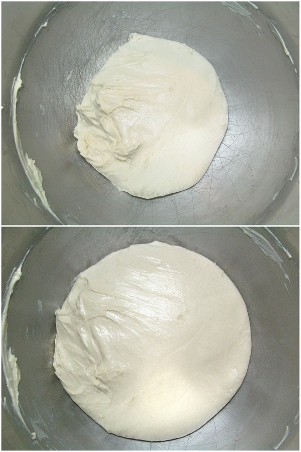 Beat at medium speed, using the flat beater, for 7 minutes. The dough will be very smooth, soft, shiny, and elastic.