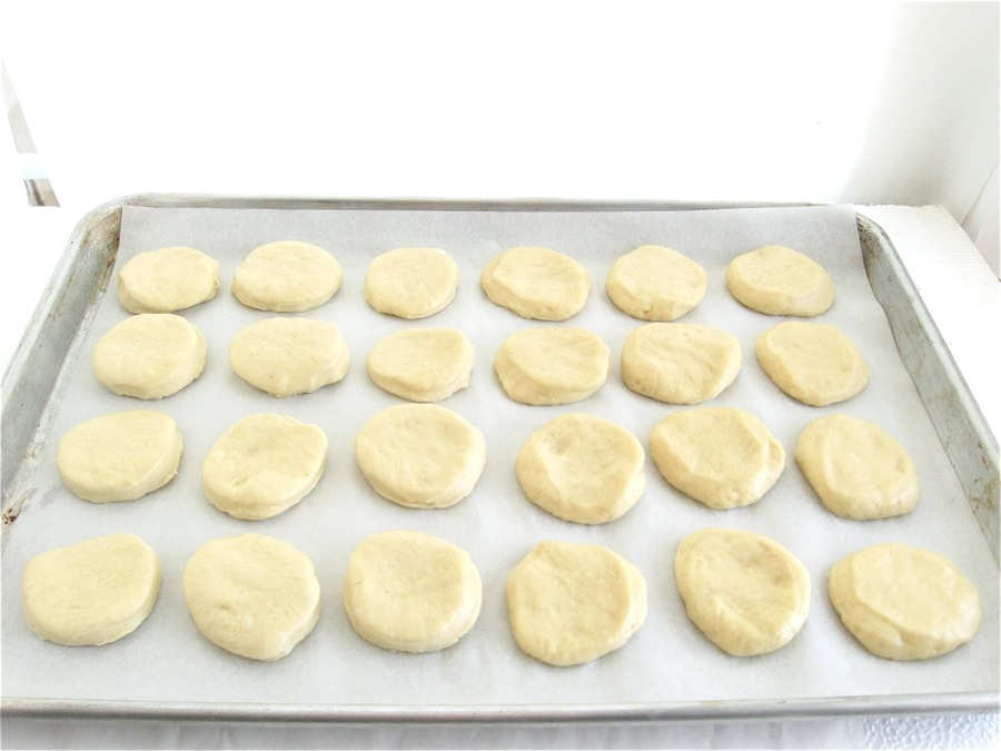 Cover the buns, and let them rise for about 2 hours. They won't get hugely puffy, and that's OK; you don't want tall dinner rolls, you want relatively squat slider buns.