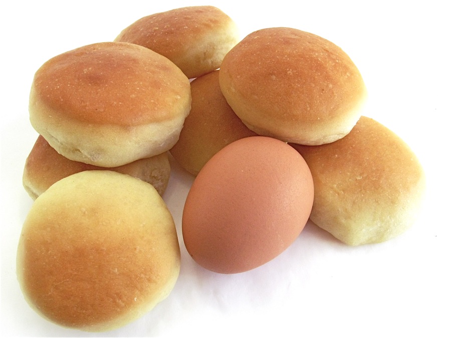 See the egg? It's there for scale, so you can envision the buns' size: about 2 1/2".