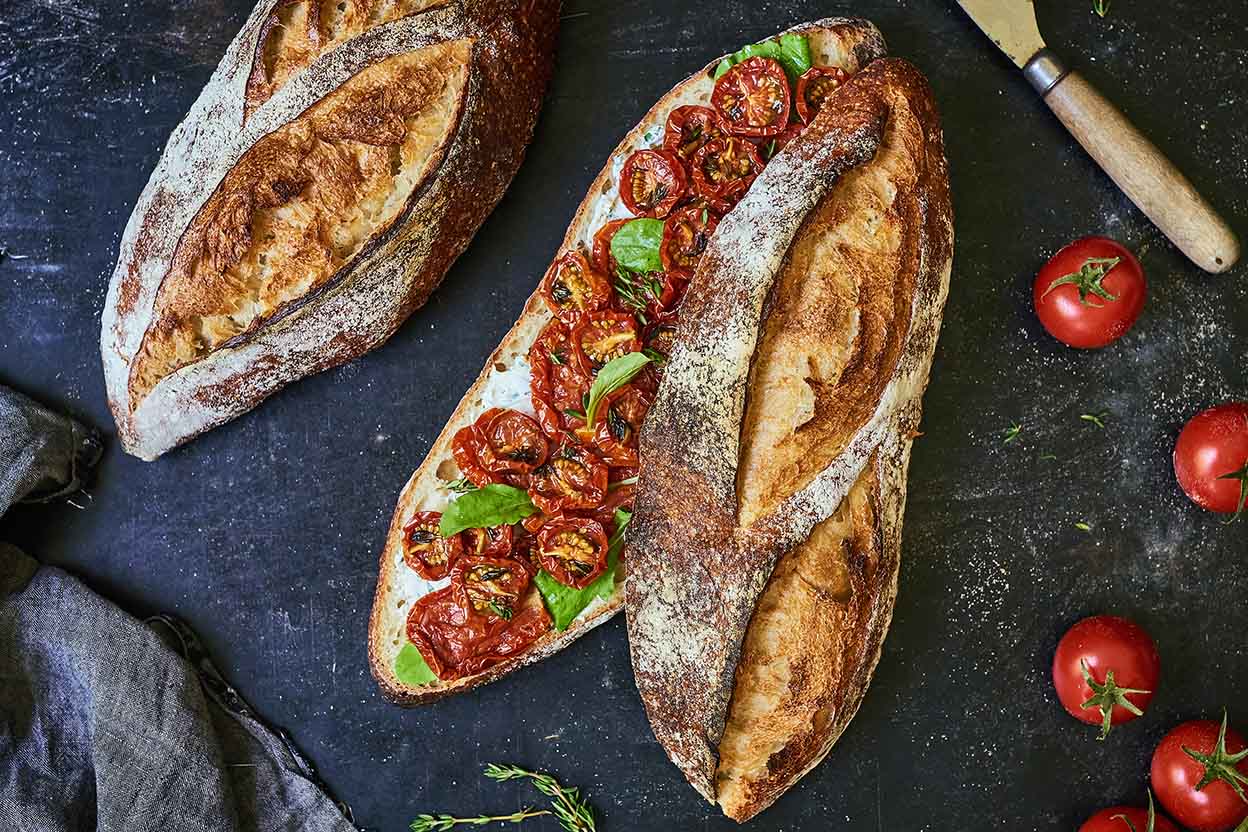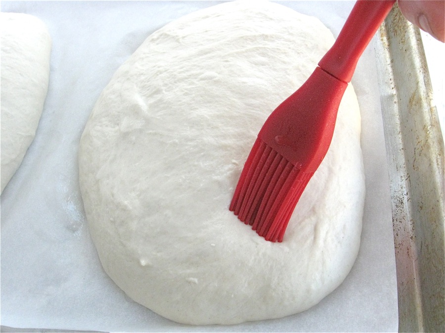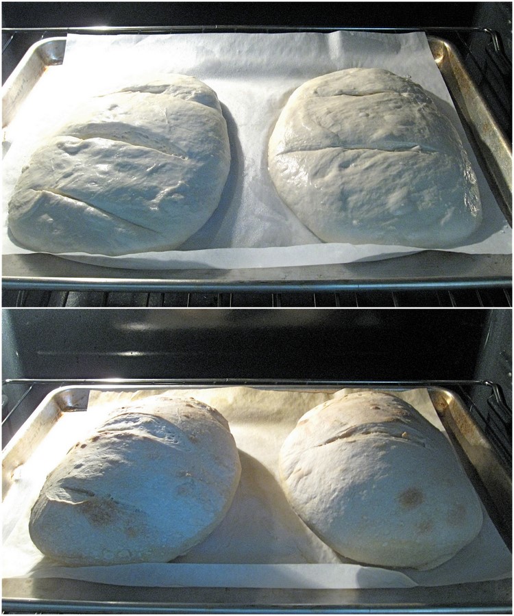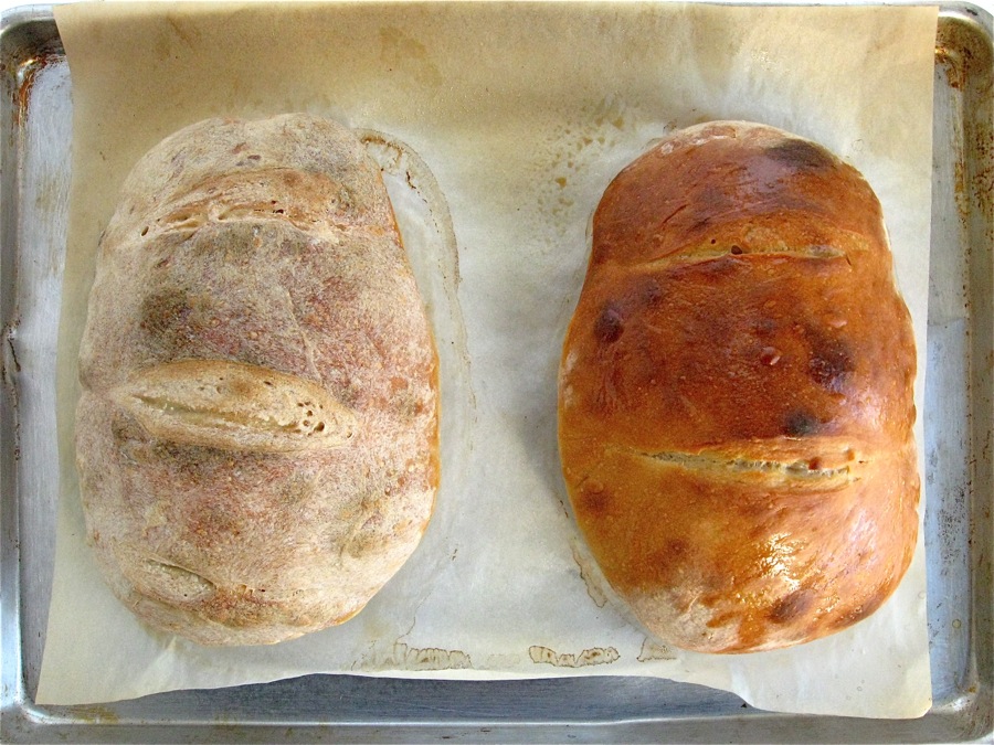 The loaf on the left is untouched by oil; the one on the right, sprayed with olive oil. Your choice.