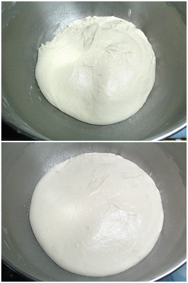 Mix and knead to form a smooth, satiny dough. The dough may seem dry at first; but keep kneading.