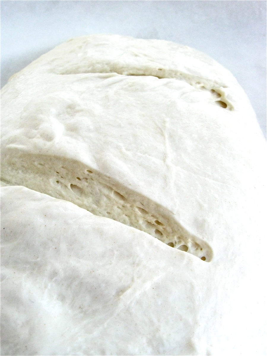 The dough will expand a bit during its overnight rise, but don't expect it to rise too much. You may see some large, lumpy bubbles trying to emerge – kind of like the Creature from the Black Lagoon.