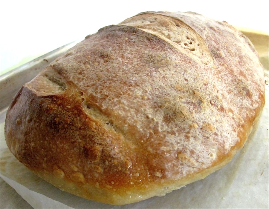 Here's the loaf without oil. It's not a deep golden brown, but hey, it is what it is – sourdough.