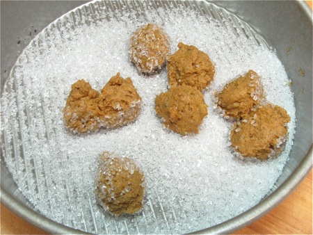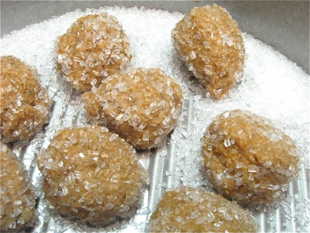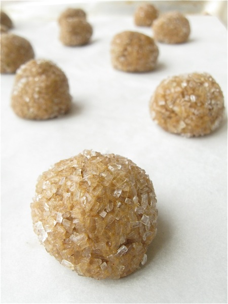 Roll the balls in coarse white sugar, if desired. The sugar will provide pleasingly complementary crunch to the soft cookies; you'll need about 2/3 cup to 3/4 cup sugar.