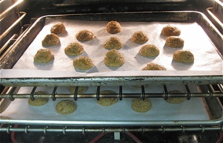 Space the cookies on a couple of large, parchment-lined (or lightly greased) baking sheets, leaving about 2" between them.