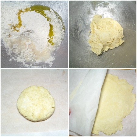 Gather the dough into a ball, divide it in half, and shape each half into a flat disk – the rounder the better. If you have time, let the dough rest, covered, for 10 to 15 minutes; it'll be easier to roll out once it's rested.
