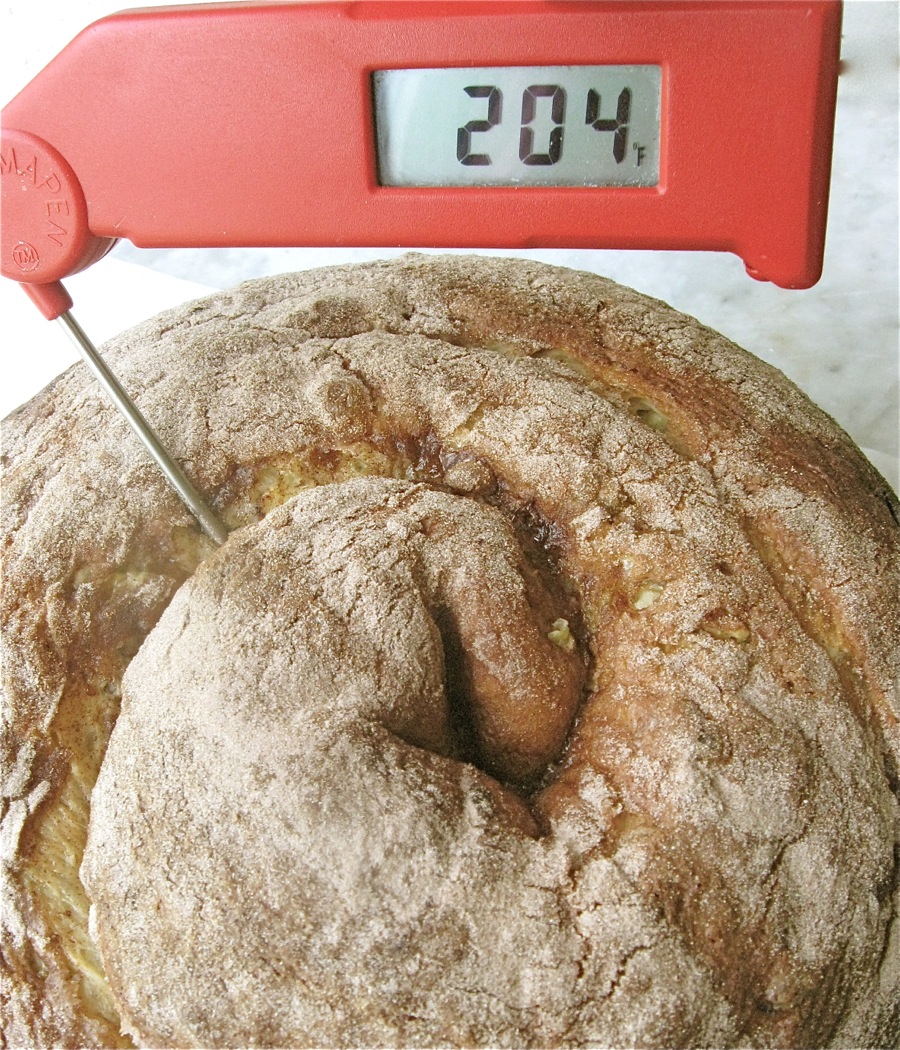 An instant-read thermometer inserted into the center will register 200°F or above.