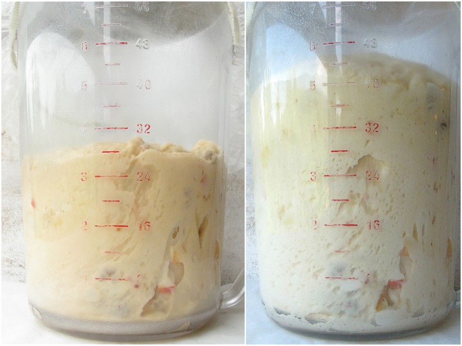 Allow the dough to rise, covered, for about 1 to 2 hours (or more, if you don't use SAF Gold yeast), or until it's puffy, though not necessarily doubled in bulk. An 8-cup measure is a handy tool for tracking the dough's rise.