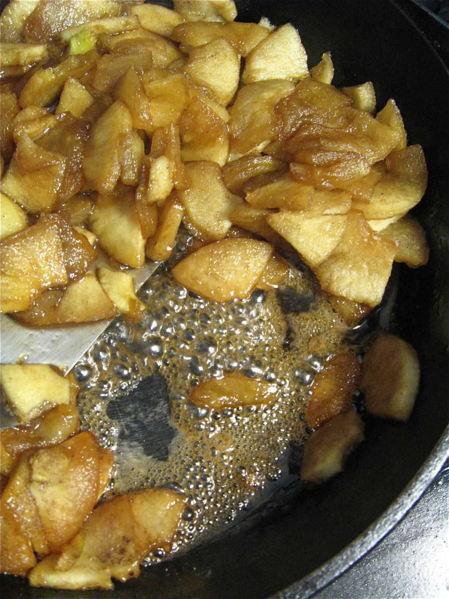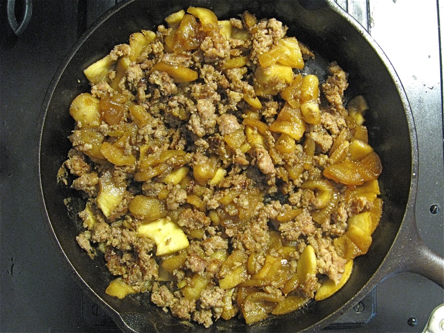 Transfer the apples to the pan in which you fried the sausage, and add the following: