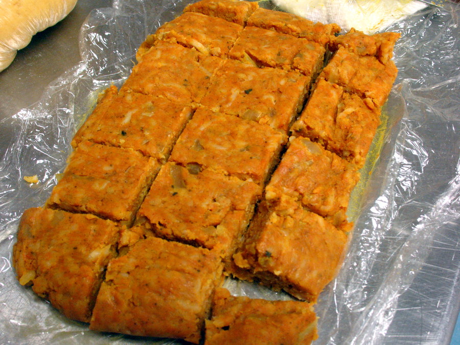 Cool the filling to room temperature, then shape into a rough rectangle and wrap well in plastic wrap if you're chilling to use at a later date.