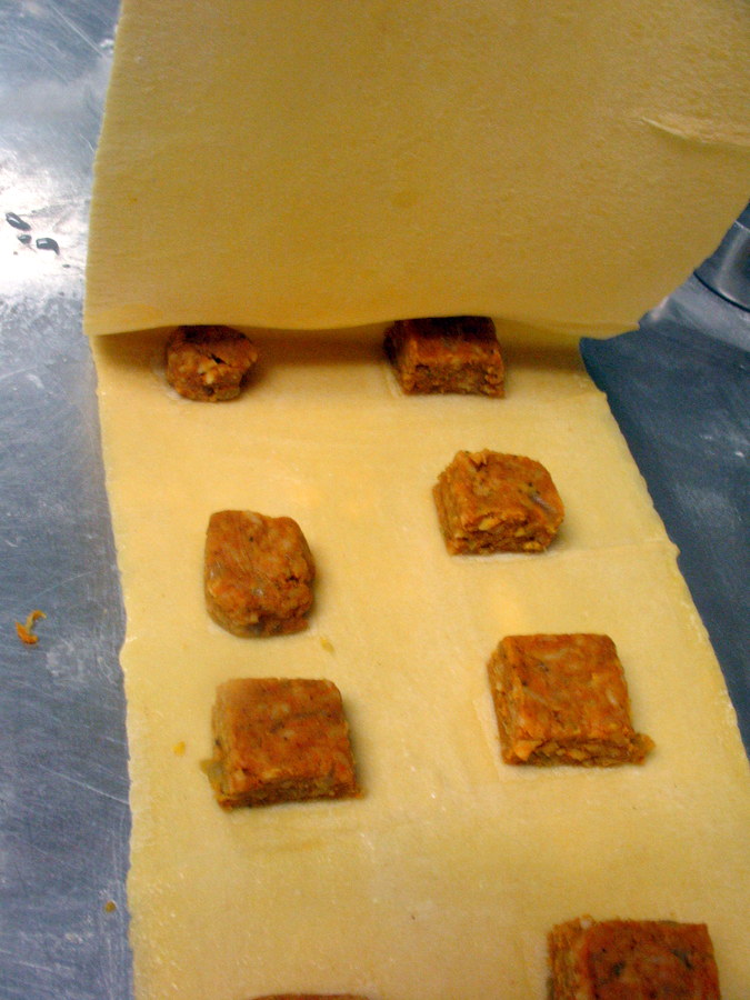 To get started, make your favorite homemade pasta dough, or our basic pasta. For the filling, go to Savory Pumpkin Ravioli.