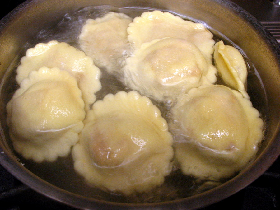 Cook the fresh pasta in salted, gently boiling water for about 4 to 5 minutes, or until they float. Once they float, cook for another minute or two. Feel free to taste one as you go along; it's really the only way to know exactly when the pasta is done.