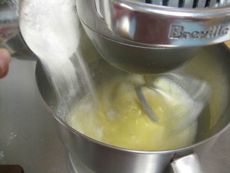 Continue to beat the mixture on medium-high speed for 30 seconds in between adding cups of dry mix. Give it a final 2 minute whirl in the mixer on medium-high speed during which the batter should develop into a thick, cake batter-like consistency.