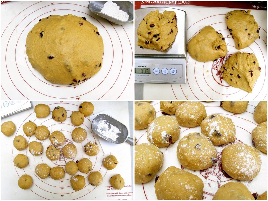 For fairly large rolls, divide the dough into 16 pieces. A scale makes easy work of this task; the pieces will be roughly 2 3/4 ounces each.