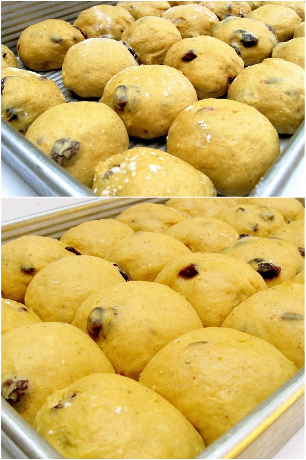 Whatever size rolls and pan you choose, cover the pan lightly, and set the rolls aside to rise for 1 hour, or until they look puffy.