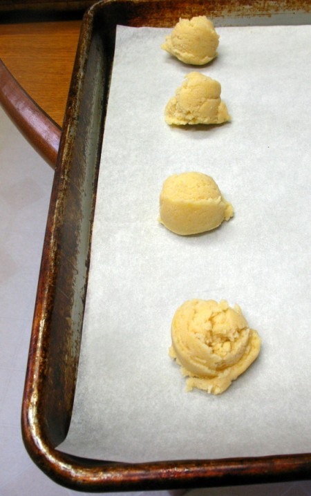 Use a teaspoon scoop or other small measure to scoop out tablespoon-sized balls of dough. While you could make them larger, part of the beauty of these cookies is their small delicate shape. You just feel a little fancier when you eat little bites IMO.