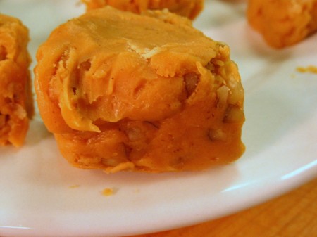After microwaving and stirring in the condensed milk, add 1/4 cup pumpkin purée, 1/2 cup diced nuts, 1/2 teaspoon pumpkin pie spice, and a few drops of pumpkin flavor.