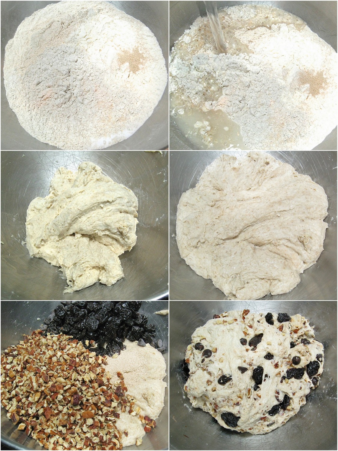 Knead the fruit, nuts, and chips into the soft dough. As you do this, try to keep the "add-ins" inside the dough; any nut, chip, or cherry poking through the top once you shape the loaf is likely to burn as the bread bakes.