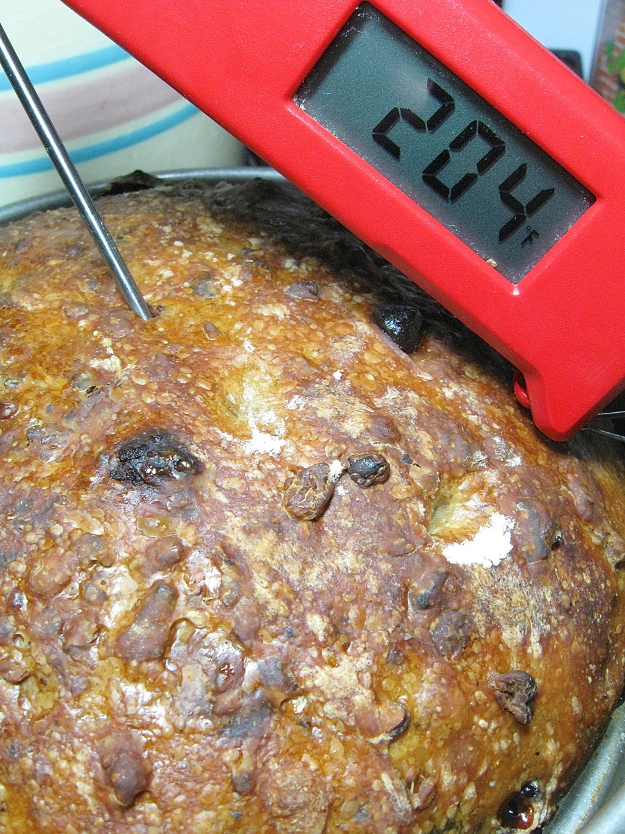 The loaf's interior should register 200°F to 205°F on an instant-read thermometer. If it's not fully baked, return it to the oven - tenting it with foil or returning the cover, if necessary, to prevent over-browning.