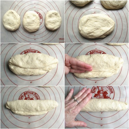 Shape each piece into a rough, slightly flattened oval, cover with greased plastic wrap or the cover of your choice, and let rest for 15 minutes.