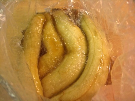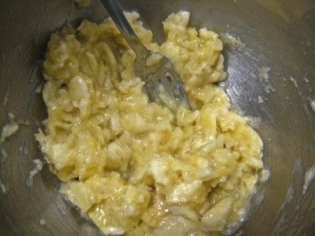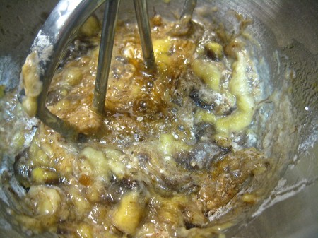 Bananas can add a lot of liquid to a batter, which is easily seen here in this post-thaw photo.