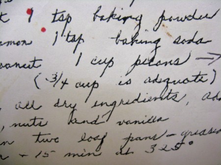 I think banana bread or not, we all have a few of these antique, weathered recipe cards stashed away in boxes of accumulated treasures or between pages of old cookbooks, often well-loved and almost illegible.