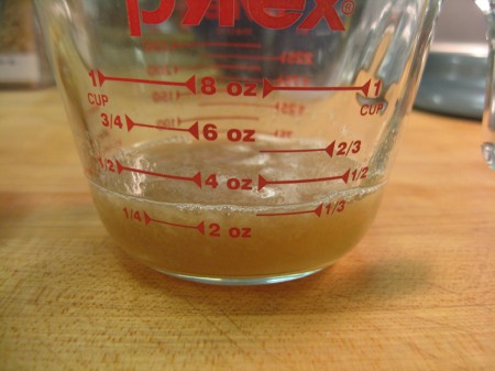 My four bananas gifted over 1/4 cup of liquid to the cause– easy to measure if you're using previously frozen fruit.