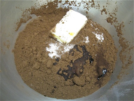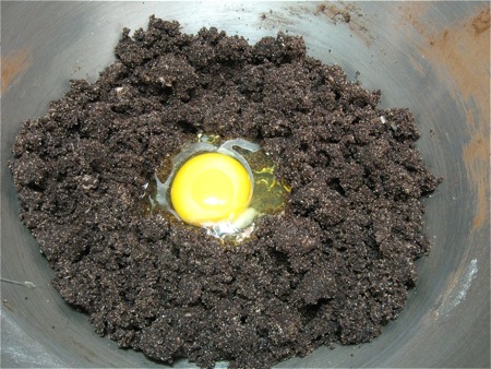 Mix to make a sandy, somewhat clumpy mixture. Don't worry; the eggs will smooth things out.