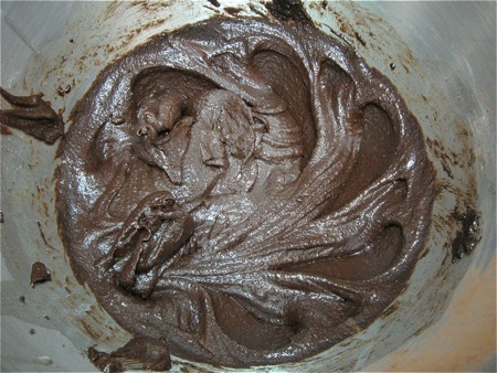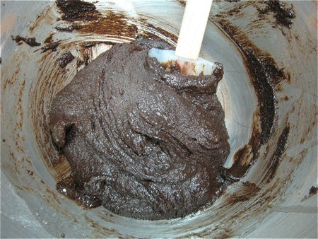 Here's the batter with all 3 eggs added. A tiny bit grainy, but overall, pretty smooth.