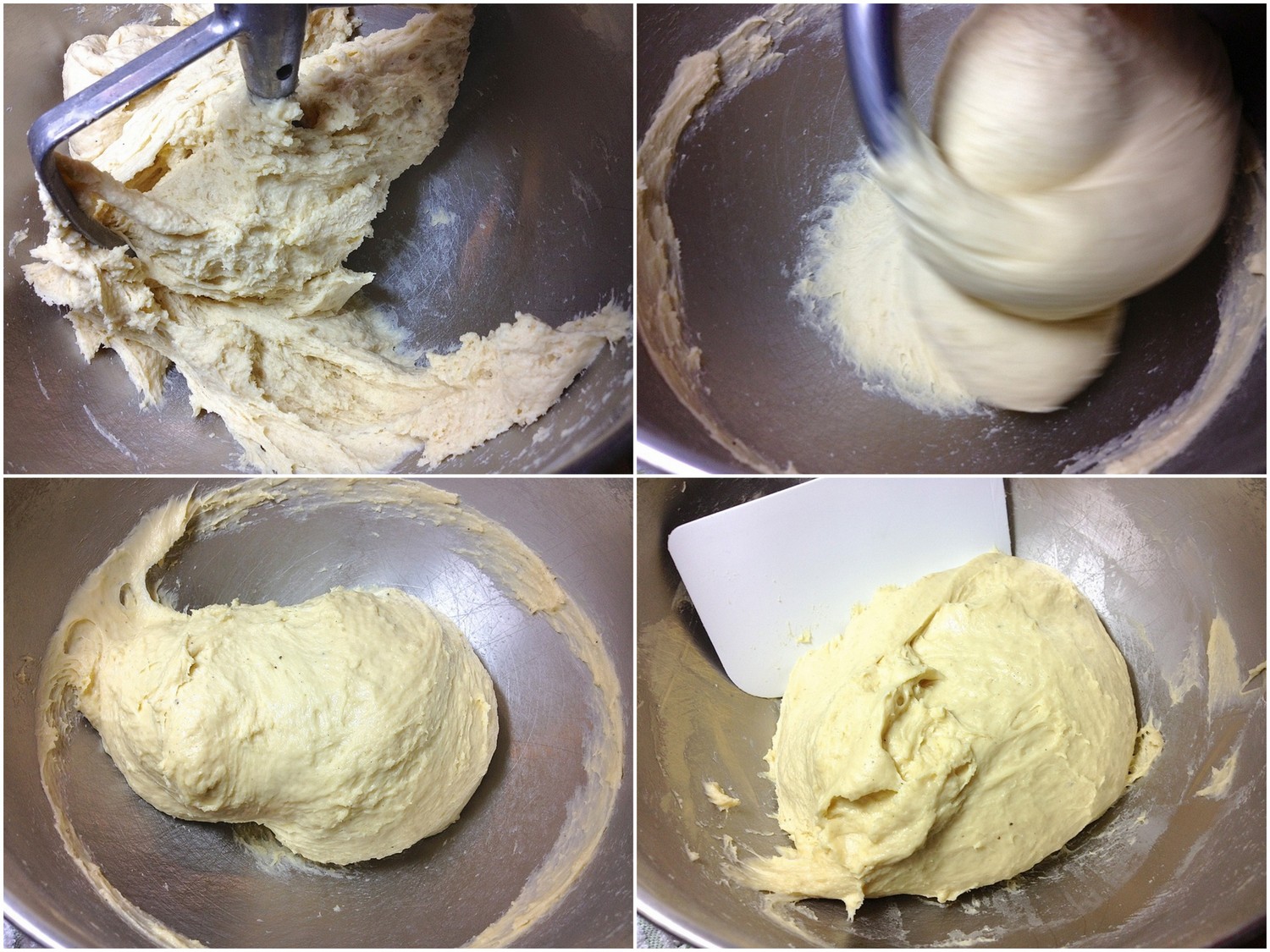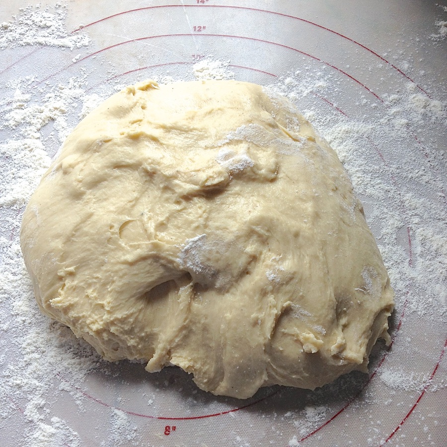 Mix and knead to make a cohesive, but quite sticky dough. This is easily done in a bread machine set on the dough cycle; or in a stand mixer – about 7 minutes on medium speed should be sufficient.
