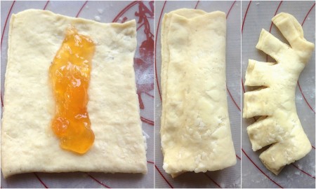 There are two ways to shape these pastries. One yields all kinds of fancy shapes; the other, detailed later, makes simple rounds. The fancy shapes turn out to be a bit problematic. Follow along with me, and you'll see why.